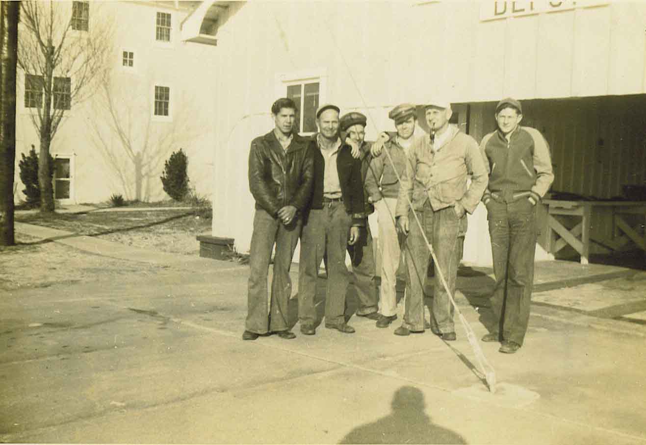 Pictured from left to right are: Bob Younkins (from Washington state), Eunice's Father in Law Webster Knott, Herman Metivier, Ralph Metivier (Eunice's brother), Zadock Sturgis, and Wally Sturgis, Jr.(Zadock Sturgis' son) |